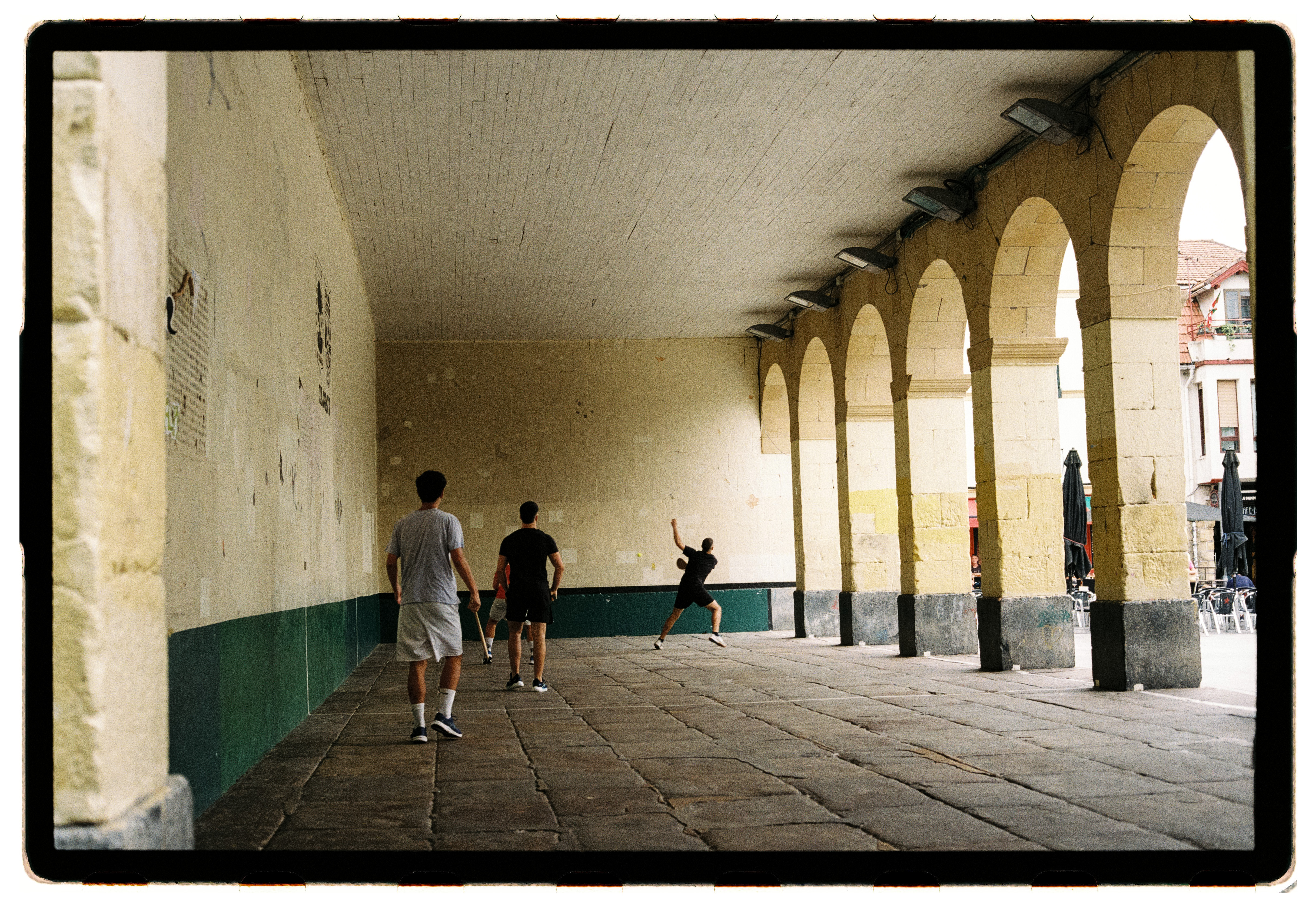 Pilotalekuak es un proyecto fotográfico que explora y documenta los frontones de Euskal Herria. A través de un recorrido en bicicleta, atraviesa pueblos para descubrir estos espacios y rincones inesperados. El proyecto se centra en cómo el juego transforma el entorno: una simple pared en una plaza o la fachada de una iglesia se convierte en un frontón gracias a la intervención de los jugadores. Así, un lugar originalmente ajeno al deporte se reinterpreta y cobra vida como espacio para jugar. Pilotalekuak es un testimonio visual de esta apropiación espontánea del espacio urbano, donde la necesidad de jugar moldea el paisaje y refuerza el vínculo entre la comunidad y su entorno.